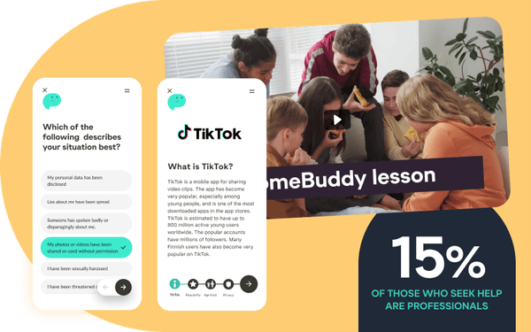 In the app, the pupil receives an assessment from SomeBuddy's experts and advice to solve the situation. SomeBuddy's aid includes a legal assessment, recommended action plan, advice on how to protect yourself online and psychosocial first aid.